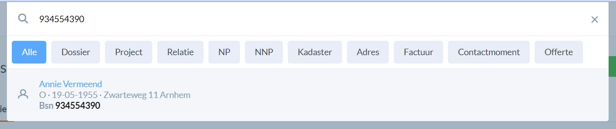 Zoeken op een natuurlijk persoon in de algemene zoekbalk
