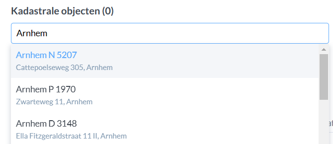 - Gebruik de zoekbalk om een bestaand kadastraal object te vinden en toe te voegen.