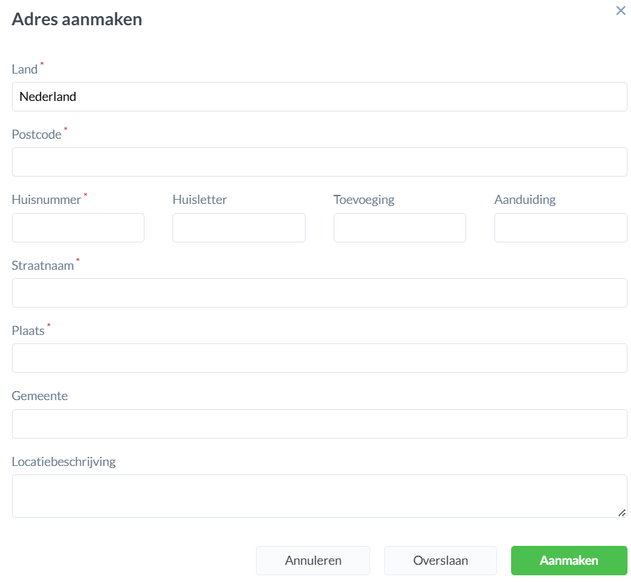 - Handmatig aanmaken: Maak het object handmatig aan door de benodigde gegevens in te voeren. Het systeem zal bij het handmatig aanmaken niet automatisch een inzage uitvoeren.