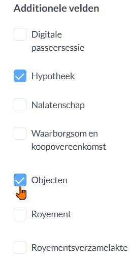 Vink het vakje aan bij objecten en klik vervolgens op opslaan.