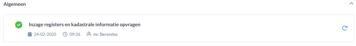 Na succesvolle afronding van de taak verschijnt er een groen vinkje. Klik op de taak of op het ronddraaiende pijltje om de taak opnieuw uit te voeren.