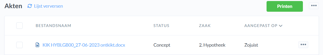 De ontkikte akte wordt vervolgens automatisch geüpload in het Akten mapje.