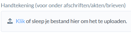 Hier kan je je handtekening uploaden die onder afschriften, akten en brieven moet komen te staan. Zorg ervoor de handtekening duidelijk is en in hoge kwaliteit geüpload wordt.