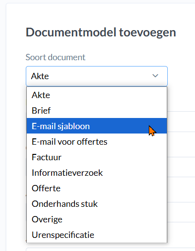 Heb je een nieuw model aangemaakt met de code? Dan sla je je model op als e-mailsjabloon onder Kantoorbeheer ➡️ Documentmodellen.