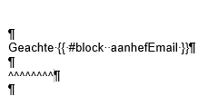 Voeg het blok vervolgens toe aan het gewenste e-mail model. Dit doe je door achter je aangemaakte blok de code te kopiëren en deze te plaatsen in je model waar je de aanhef op wil roepen.