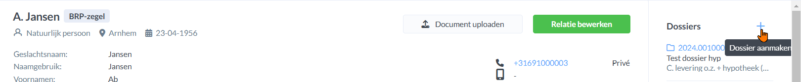 Dossier aanmaken vanuit de relatiekaart