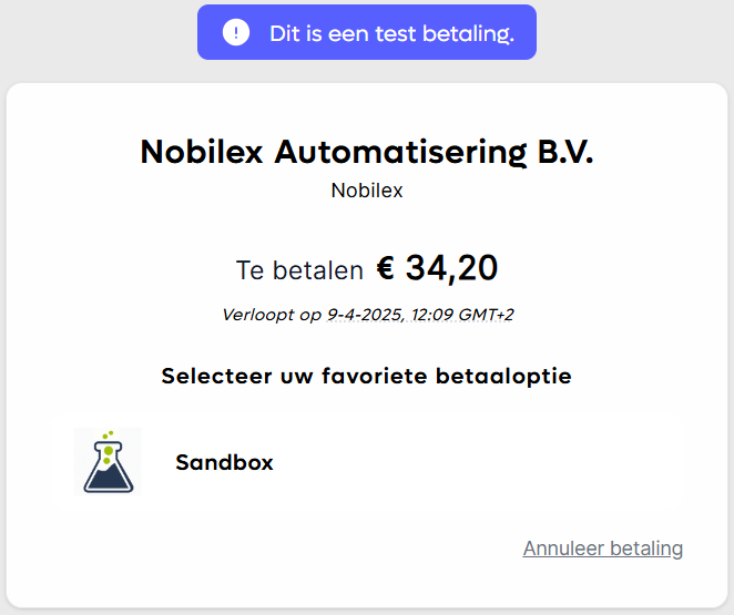 De betaalstatus wordt direct verwerkt in Nobilex zodra het betaalverzoek is voldaan.