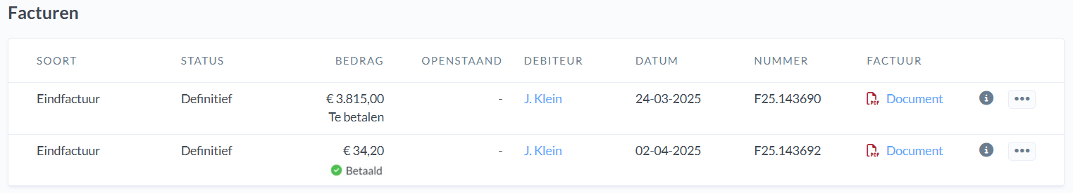 Het boekingenscherm op je tabblad 'Financieel' wordt verwerkt nadat de betaling ook in de boekhouding is verwerkt.
