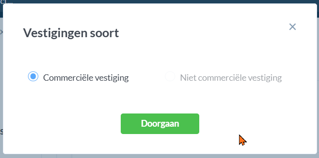 In het vierde scherm kun je kiezen uit een commerciële of niet commerciële vestiging.