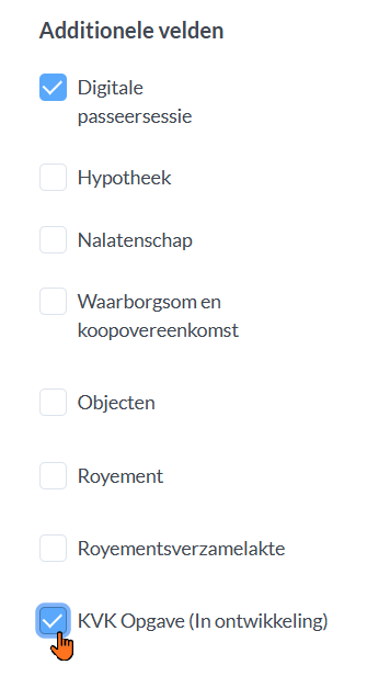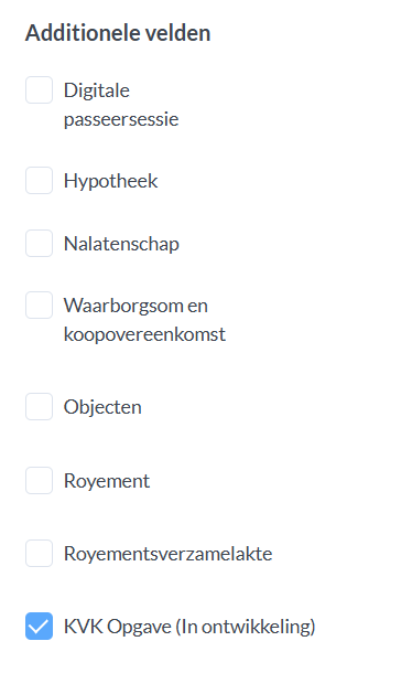 - KVK-opgave activeren bij de juiste zaaksoorten (zoals “Oprichting BV”). Vink hiervoor KVK Opgaven aan in de betreffende zaaksoorten.