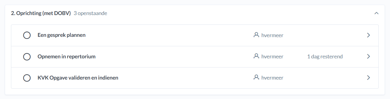Wanneer je naar je taken gaat zie je de taak "KVK Opgave valideren en indienen" staan.