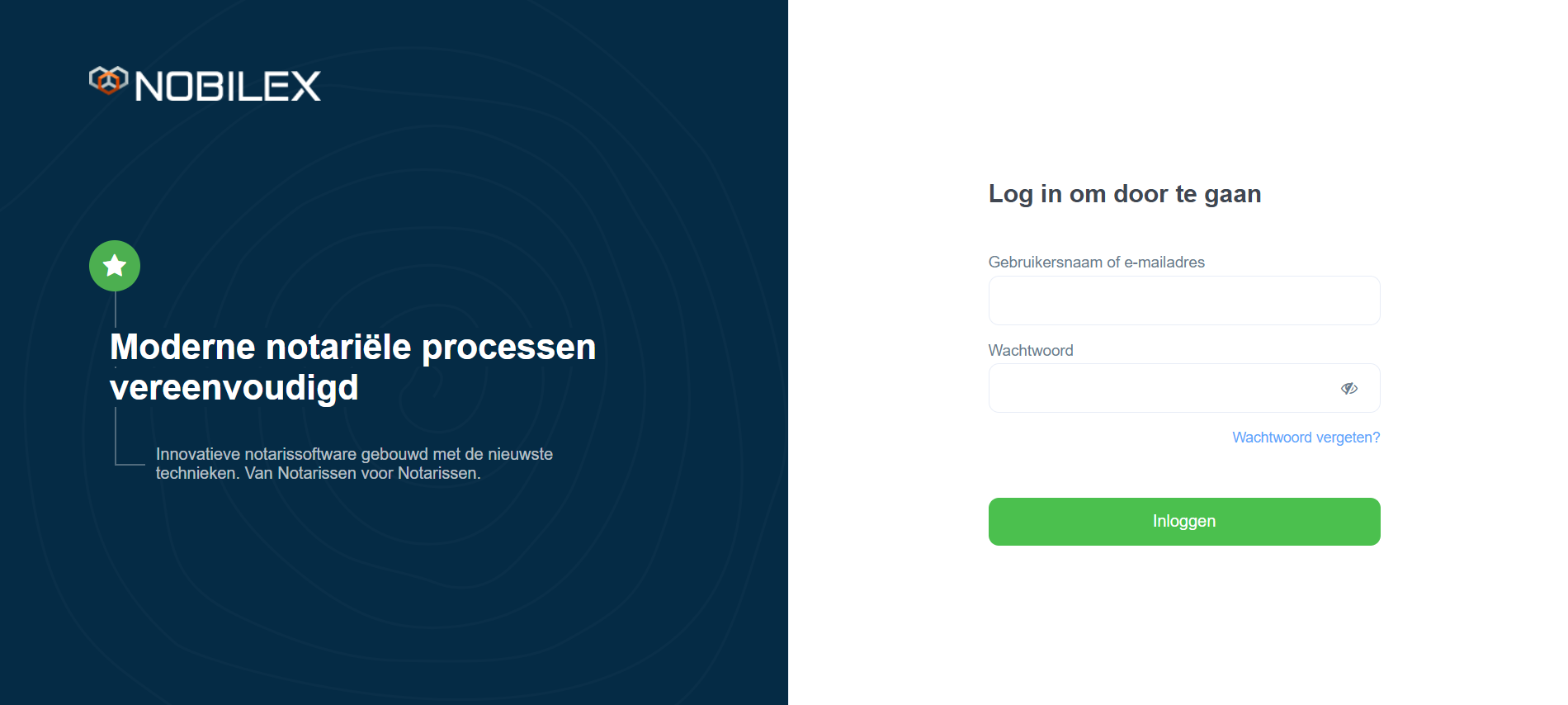 Het inlogscherm voor Nobilex ziet er als volgt uit: