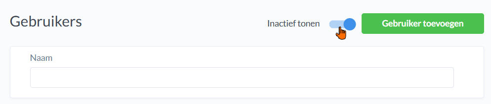 Inactieve gebruikers kan je terugvinden door het schuifje aan te zetten.