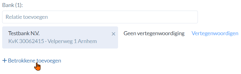 Ook andere betrokkenen zoals de bank, hypotheekverstrekker, makelaar of gevolmachtigde kunnen hier worden gekoppeld. Vul bij ‘Bank’ de naam van de bank in.