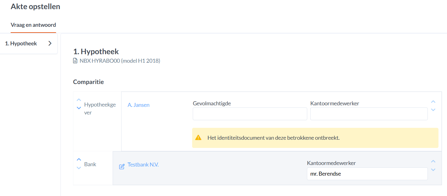 💡Let op: bij KIK-akten is het belangrijk dat de hoedanigheden ‘Hypotheekgever’ en ‘Bank’ worden gebruikt.