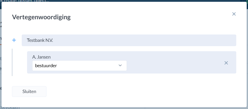 - Wil je meerdere vertegenwoordigers toevoegen? Herhaal dan stap 4 en 5 voor elke extra relatie.