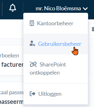 Om de telefonie integratie te activeren in je account, klik je rechtsboven op je gebruikersnaam in Nobilex en ga je naar Gebruikersbeheer.